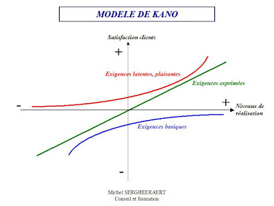 Le modèle de KANO se propose de mettre en relation satisfaction des exigences (réponse aux besoins) et leurs conséquences sur la satisfaction client.